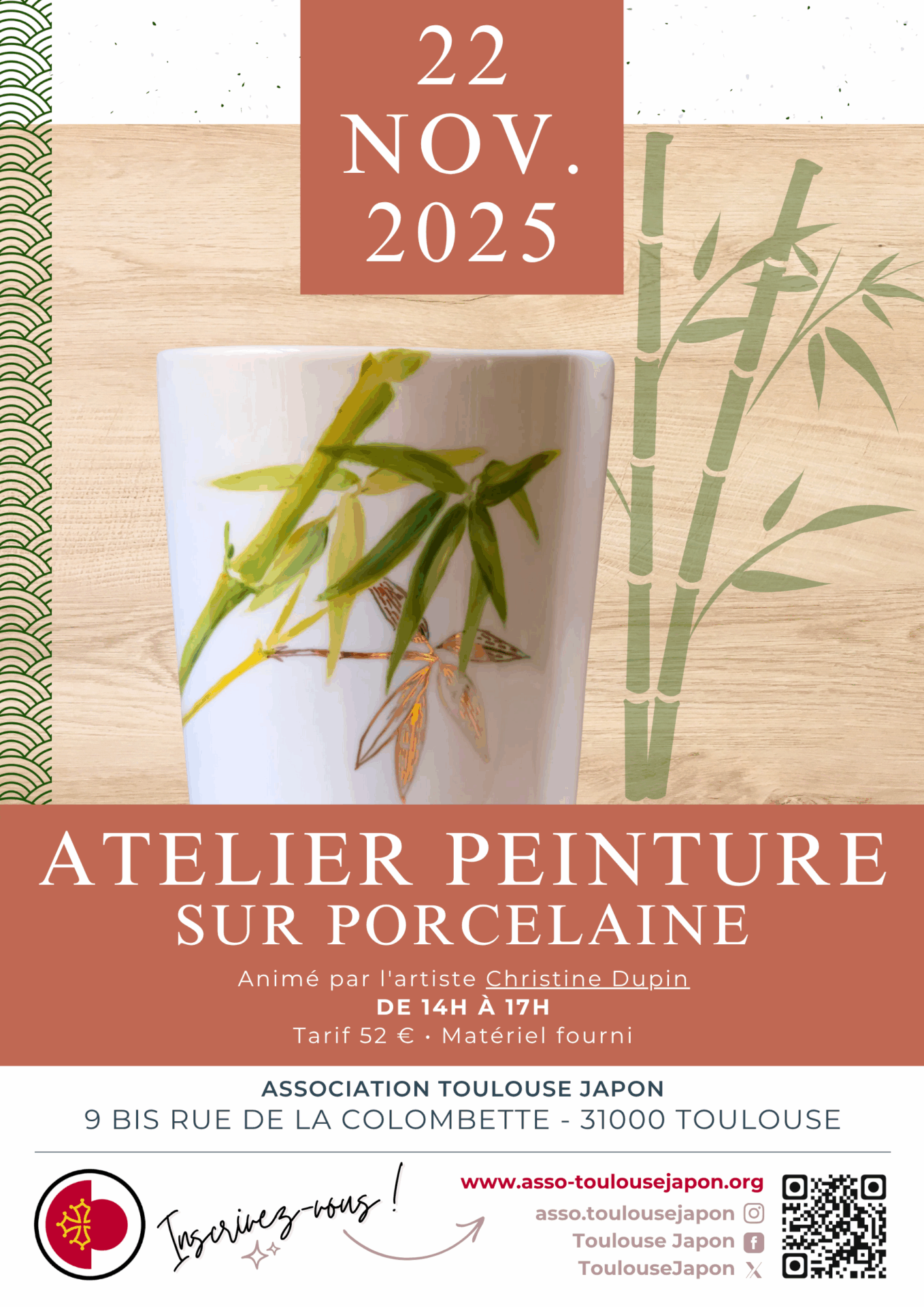 Pour vous inscrire : https://www.helloasso.com/associations/association-toulouse-japon/evenements/atelier-peinture-sur-porcelaine-22-novembre-2025