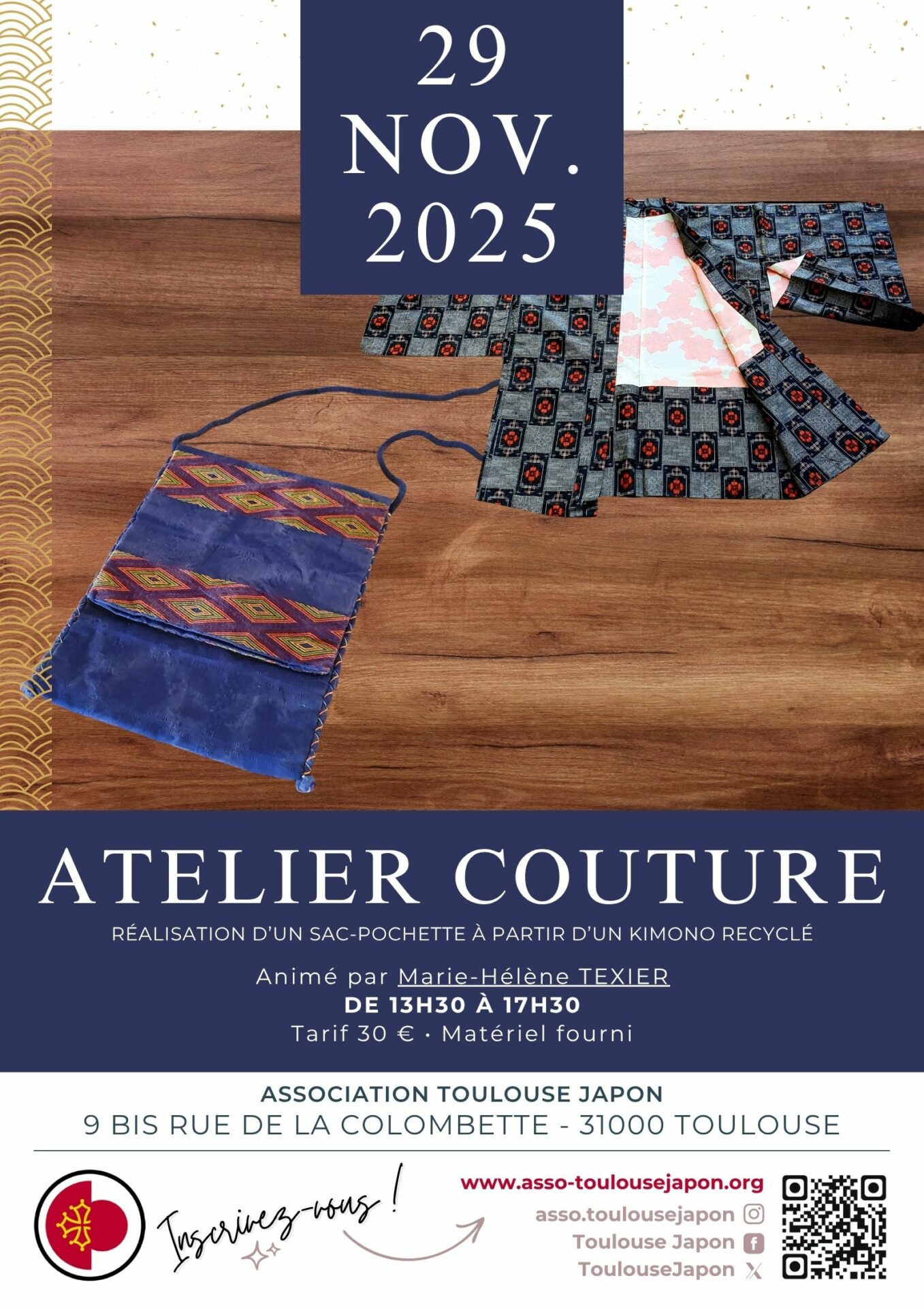 Lien pour vous inscrire : https://www.helloasso.com/associations/association-toulouse-japon/evenements/atelier-couture-29-novembre-2025