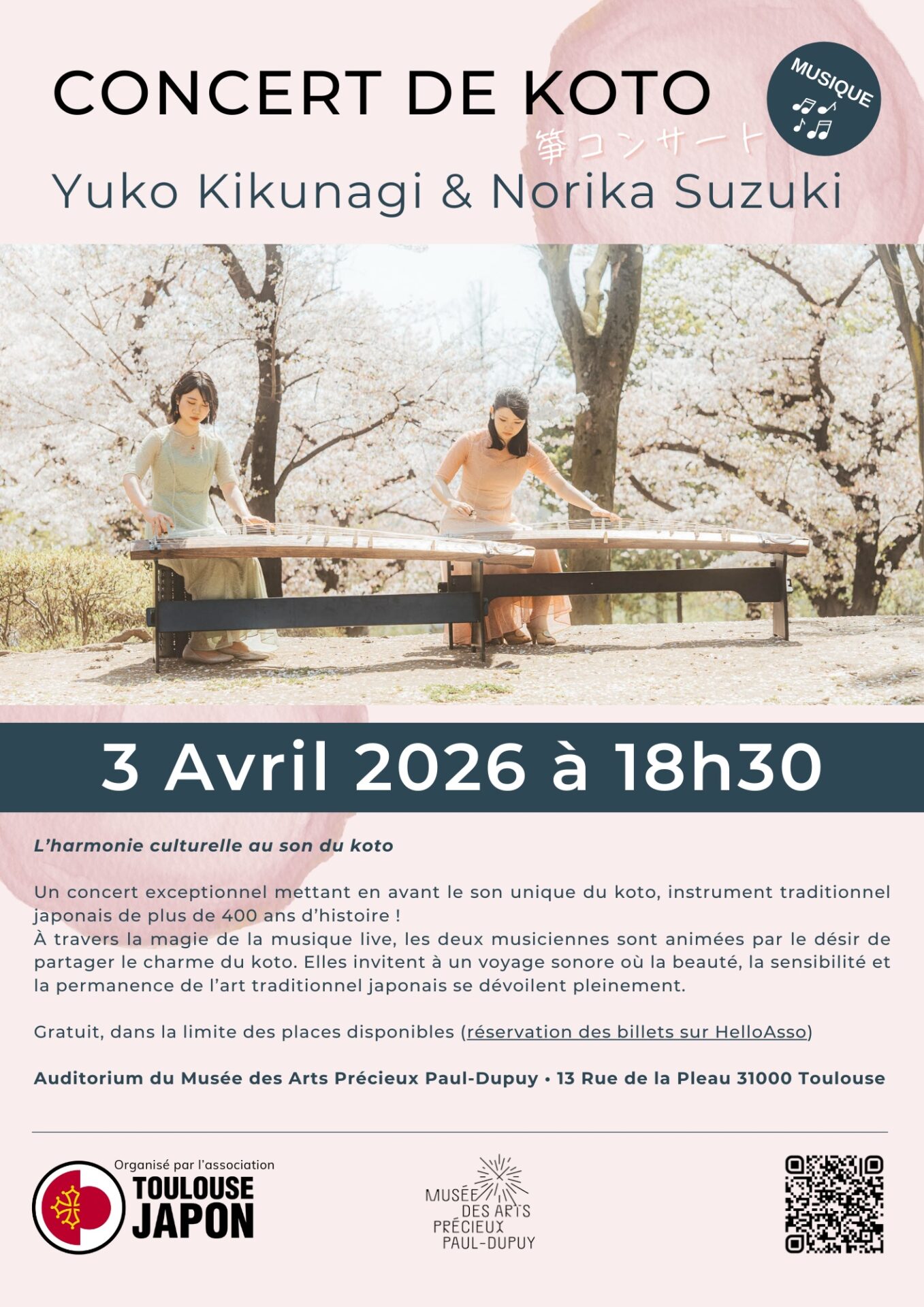 Inscription sur : https://www.helloasso.com/associations/association-toulouse-japon/evenements/concert-de-koto-3-avril-2026