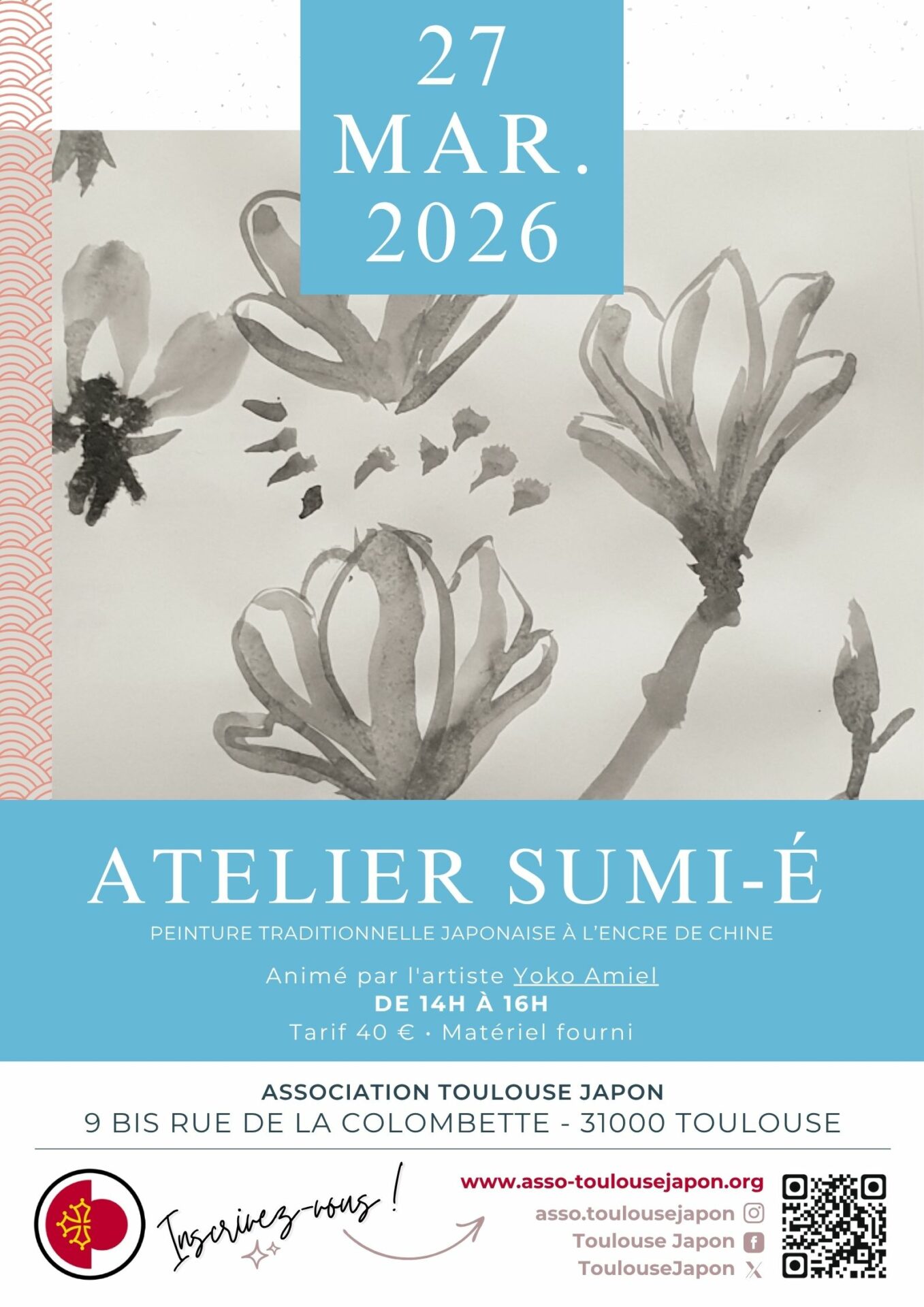 Lien d’inscription : https://www.helloasso.com/associations/association-toulouse-japon/evenements/atelier-de-sumie-27-mars-2026